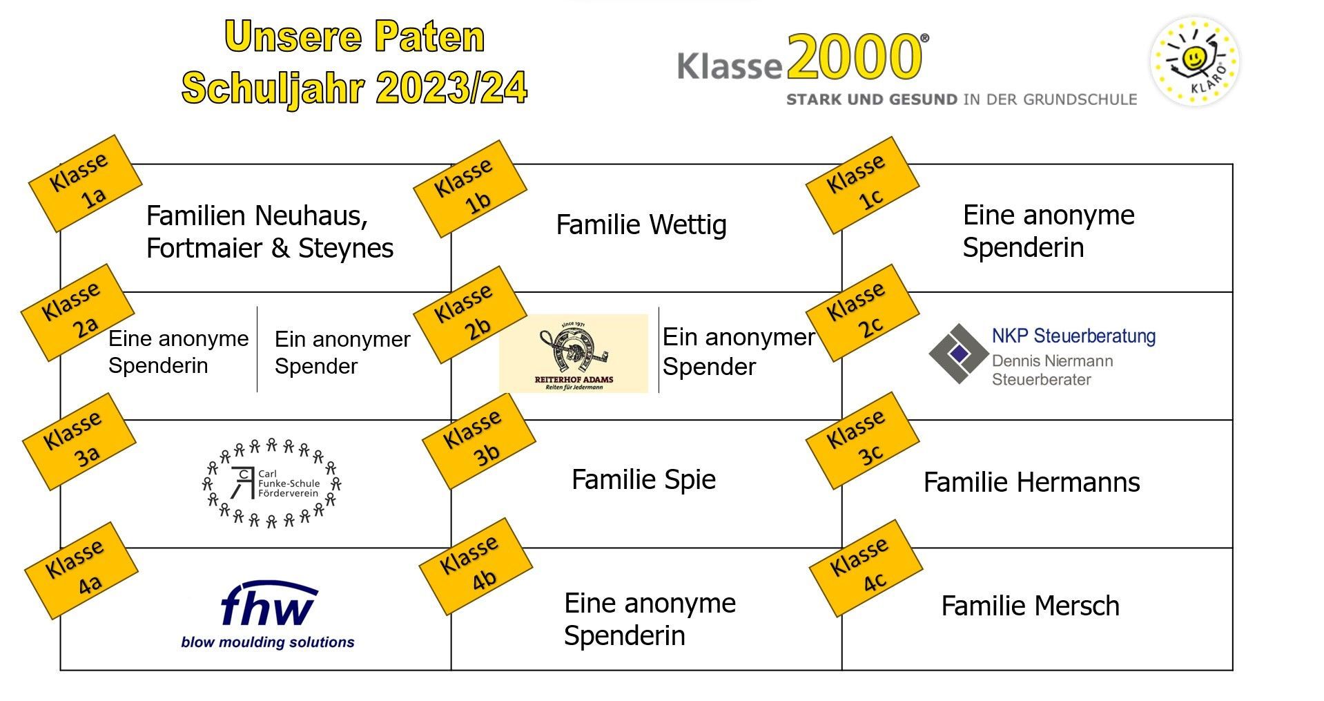 Auch für das Schuljahr 2023/24 haben sich wieder Sponsoren und Sponsorinnen für alle Klassen für das Programm Klasse 2000 gemeldet. Auch der Förderverein unterstützt einzelne Klassen.